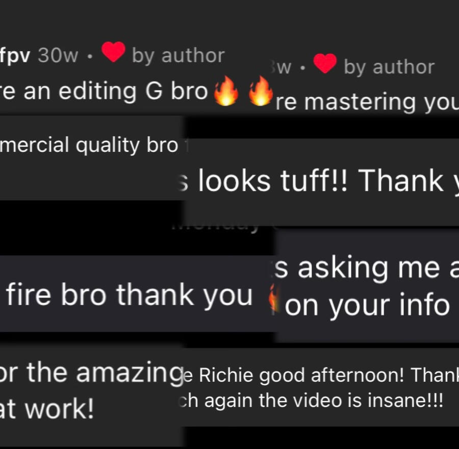 Hi I'm Willie but people call me Richie, I'm a freelance videographer and filmmaker based in the state of Arizona. I Specialize in short form content such as highlight reels and short commercials, with over 7 years of video editing and no college degree I've learned to teach myself different techniques to utilize my skills to bring others visions to life.
